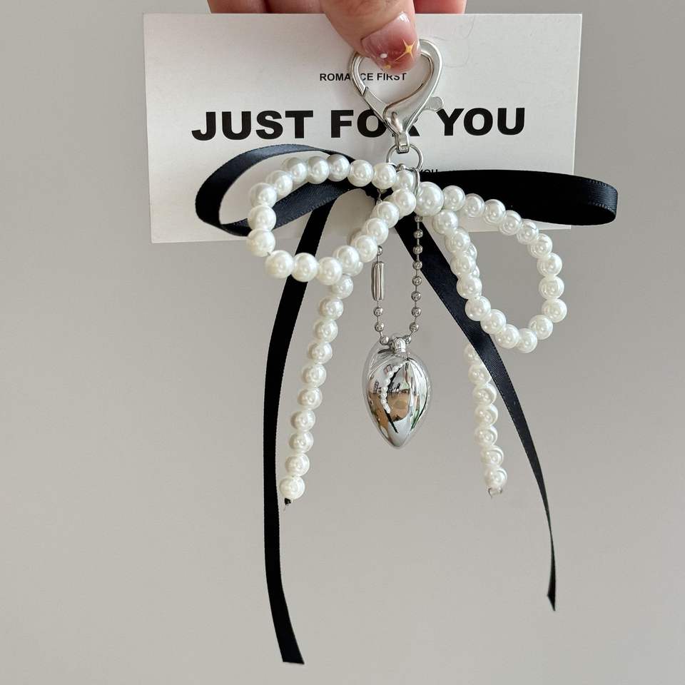Pendentif de sac en forme de cœur avec ruban français et perle de la série Miu, polyvalent, haute beauté, décoration suspendue, porte-clés