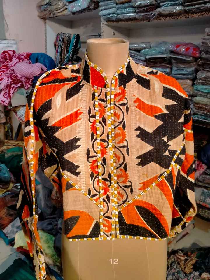 Veste bohème hippie réversible en coton Kantha matelassé, faite à la main, respirante, aux couleurs assorties