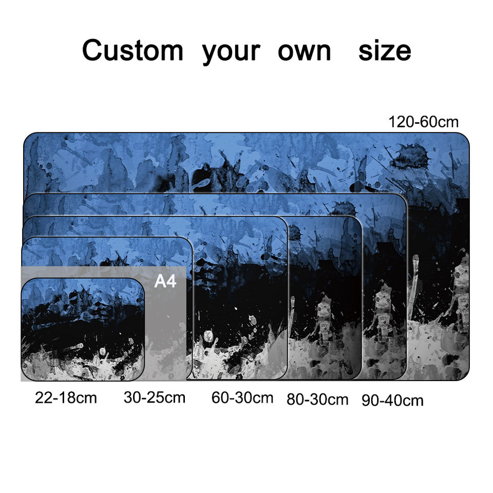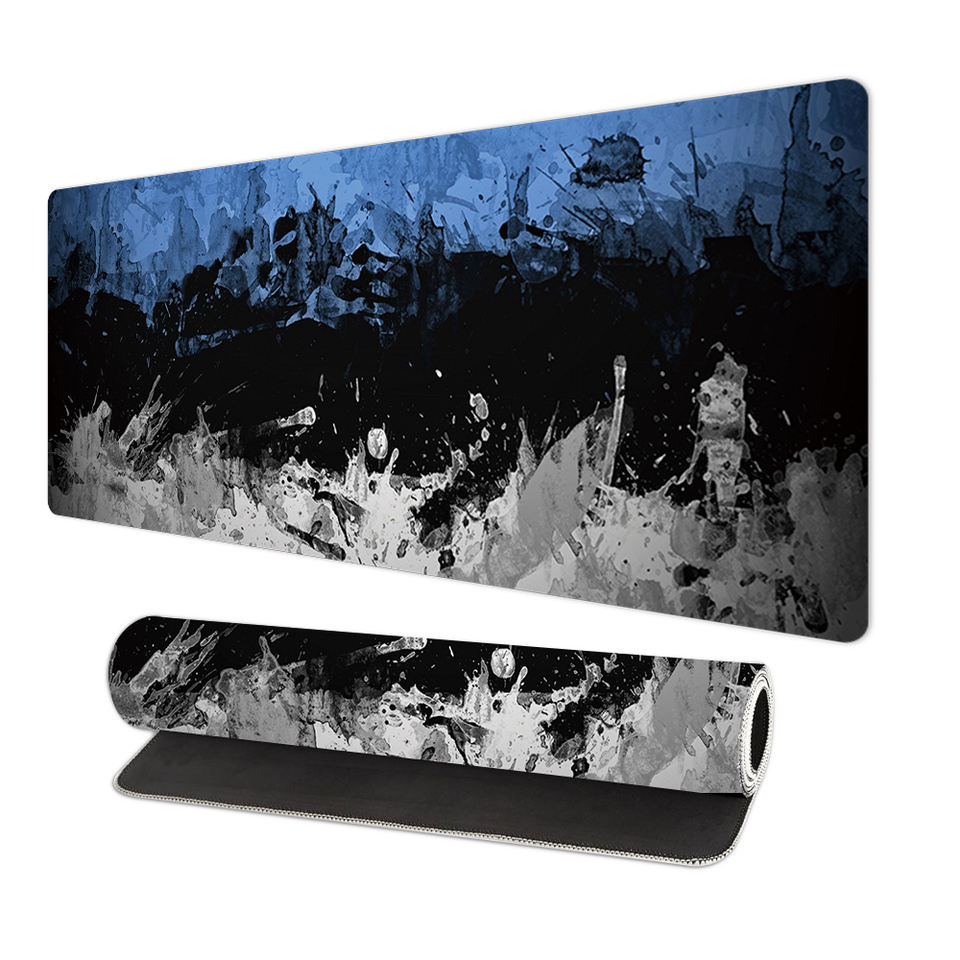 Grand tapis de souris imperméable à motif encre bleu-noir, design personnalisé, tapis de jeu, tapis de bureau pour ordinateur avec base en caoutchouc pour le bureau