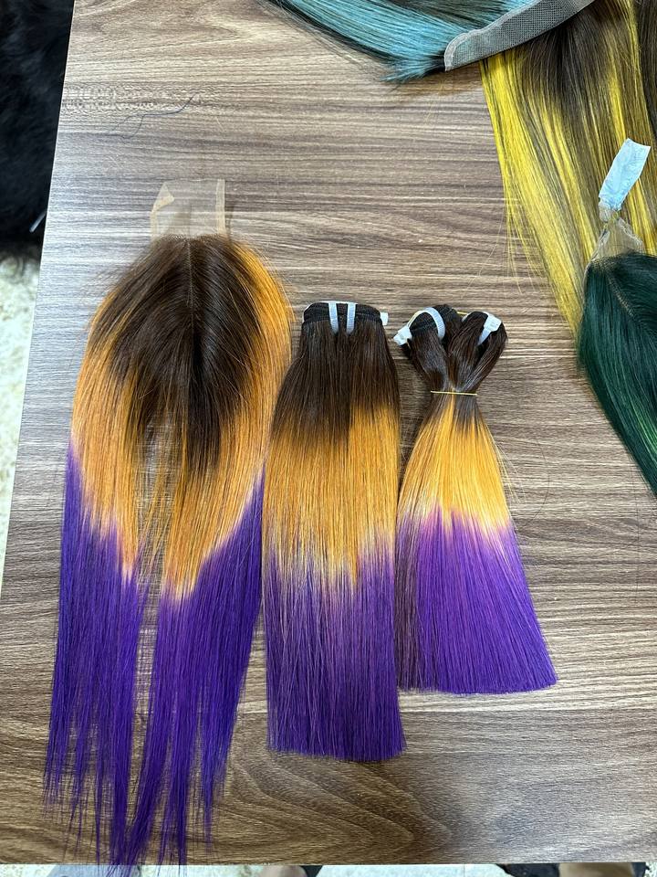 Bundles de cheveux de couleur mélangée avec fermeture Super Double os dessiné droite vierge femme vietnamienne Bundles de cheveux humains avec fermeture