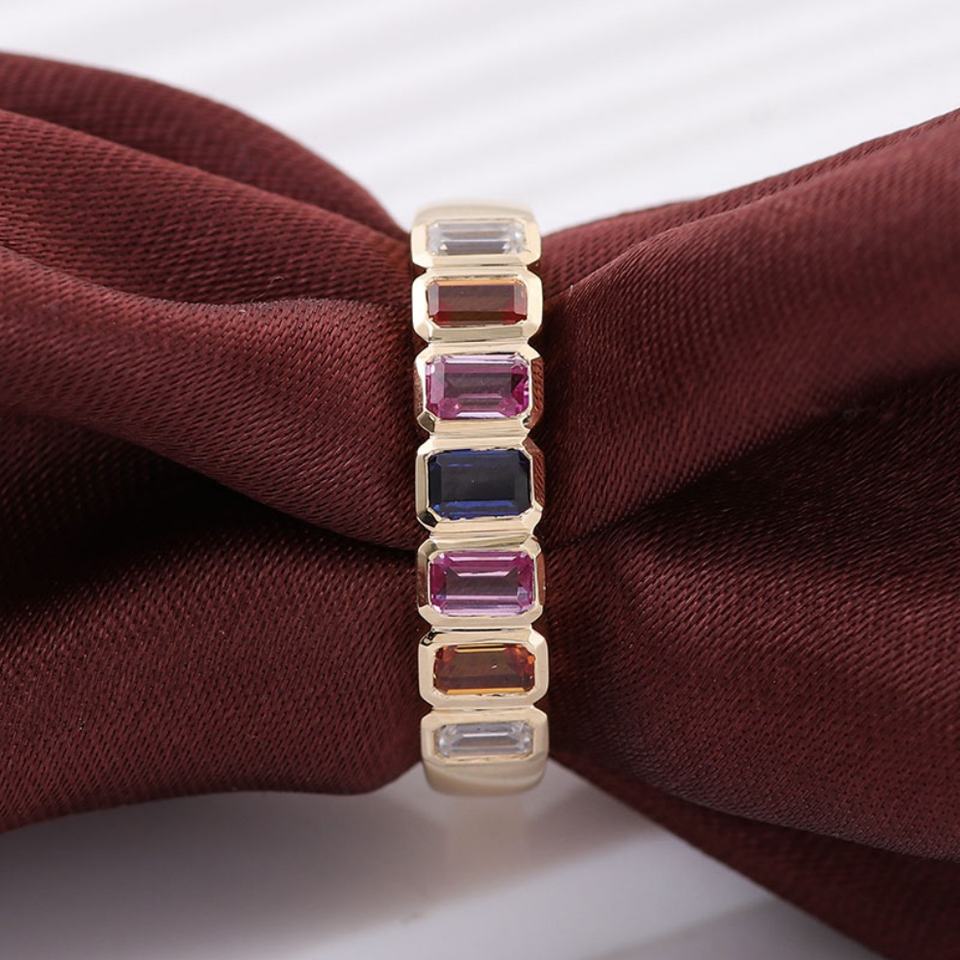 Bagues en pierres précieuses mélangées pour intersexuels, coupe émeraude DEF, rose, bleu, boîte à bijoux, plaqué or, or 10 carats, bijoux fins à la mode, bagues modernes