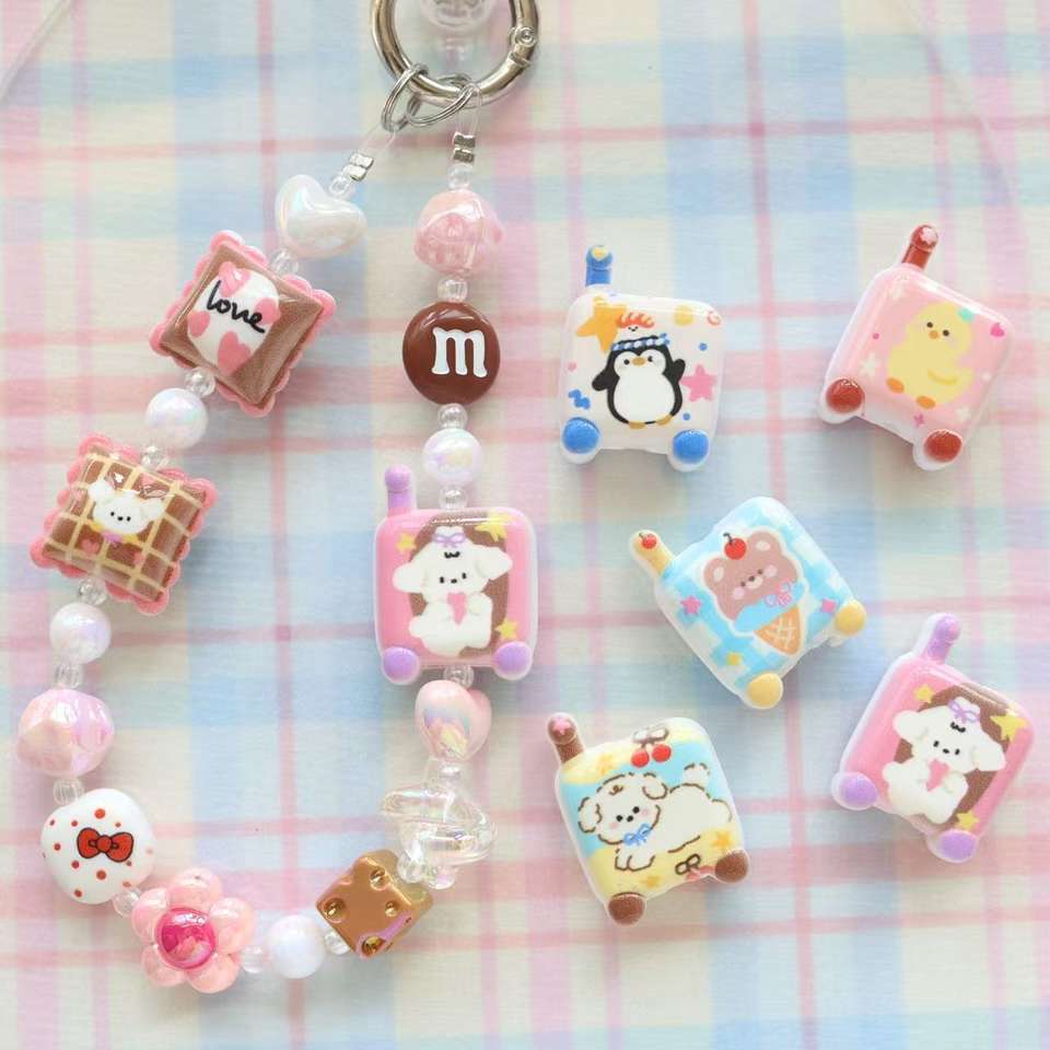Lot mixte de perles en plastique acrylique colorées avec logo de dessin animé pour la fabrication de cordes à cheveux, de lanières de téléphone, de bijoux, de sacs à stylos, d'accessoires