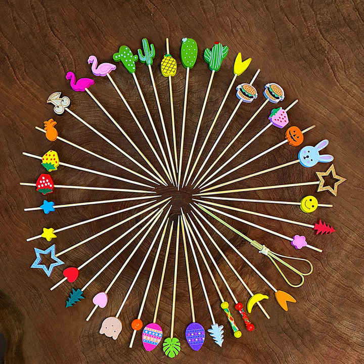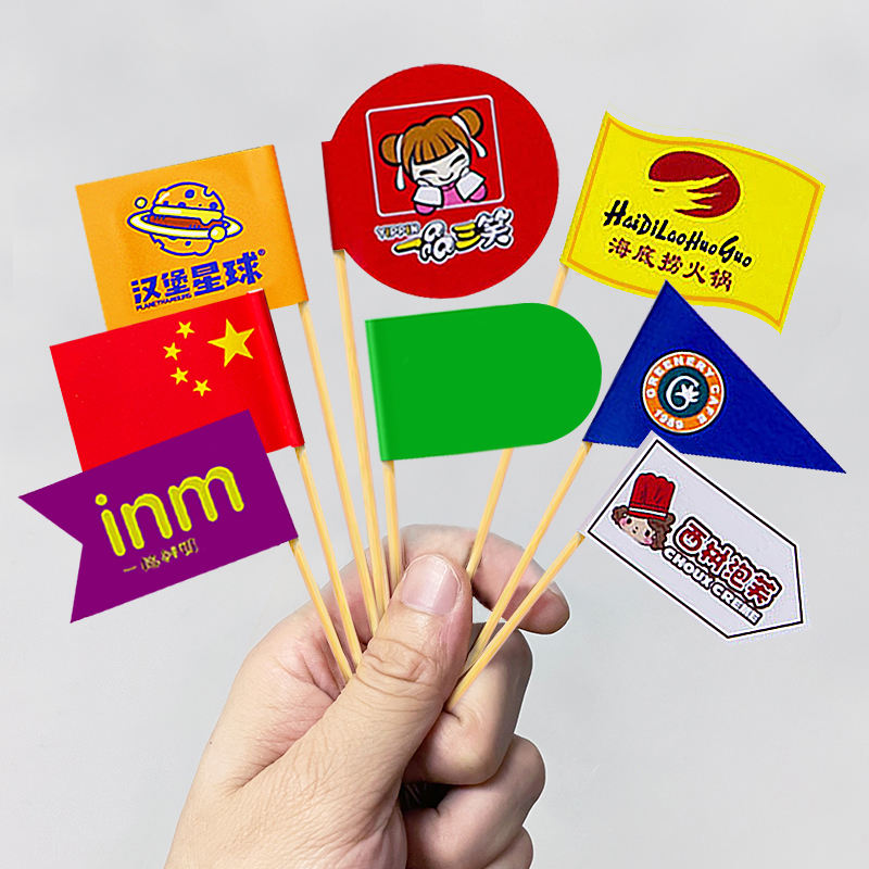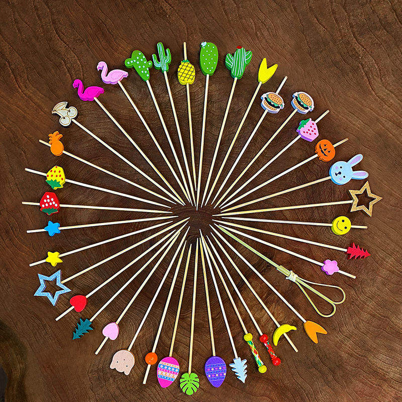 Mixed Bamboo Stick Cute Animal Toothpicks Disposable Customizable Logo Multiple Lengths Bag Packaging Fruit Flower Hamburger