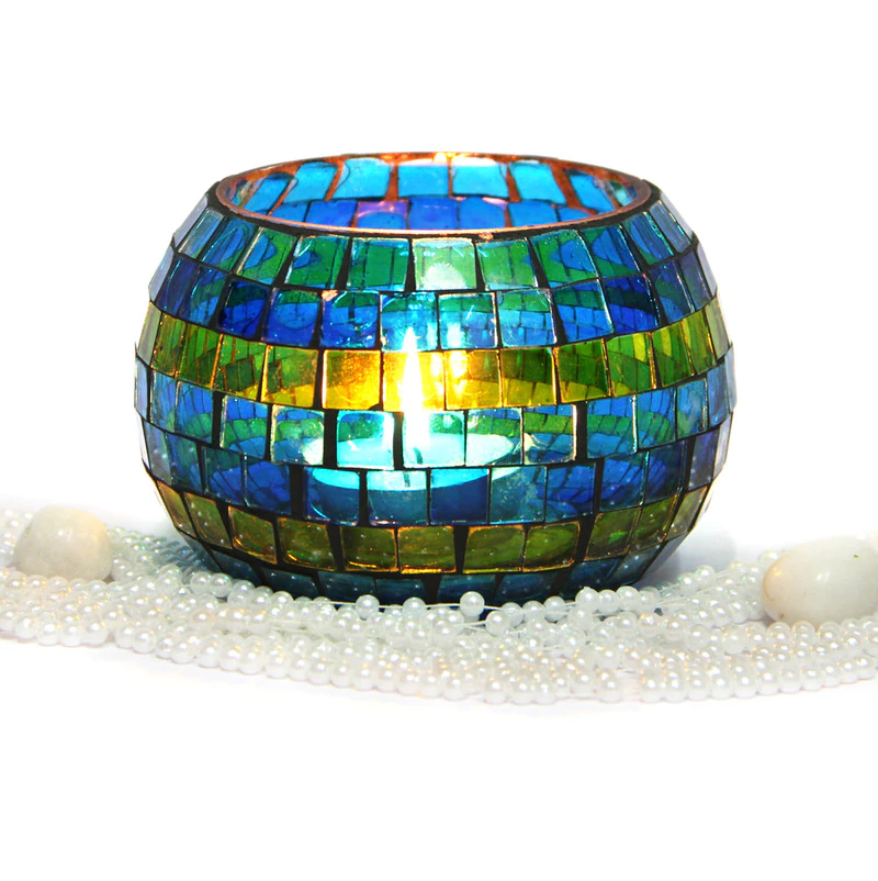 Bougeoir en mosaïque de verre Unique de style nouveau fait à la main de couleur mélangée pour la décoration de la maison pot de bougie fabriqué en Inde