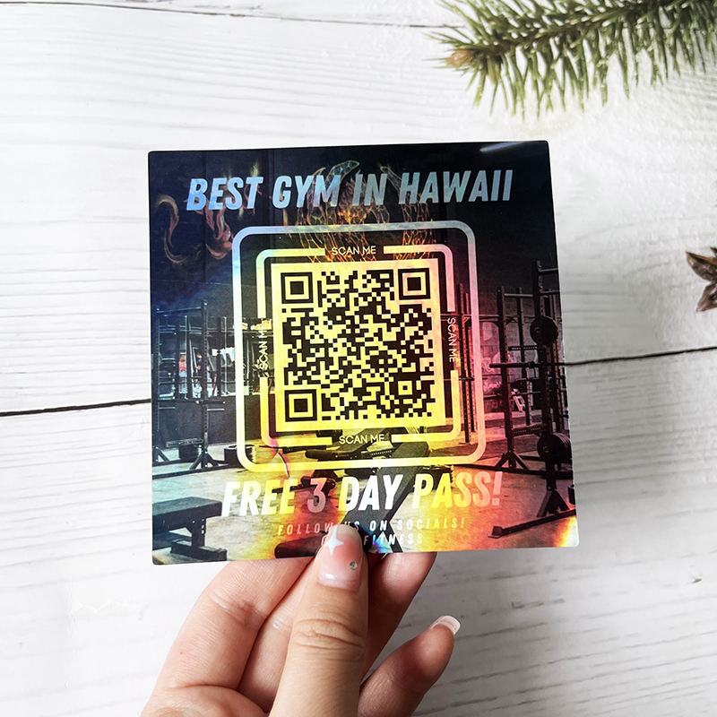 Conceptions mixtes étanche extérieur résistant aux intempéries autocollants en vinyle impression personnalisée holographique découpé Qr Code autocollant étiquette