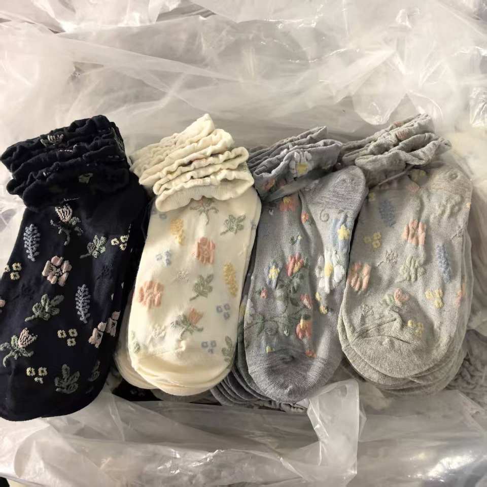 Lot mixte de surplus de vêtements : Chaussettes décontractées pour femmes, style japonais, à motif floral, à volants délicats, montantes à la cheville, à prix bas pour la revente