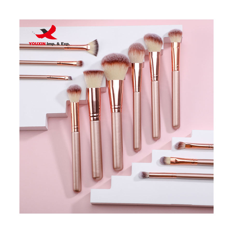 Lot de 12 pinceaux de maquillage or champagne sans logo, prix de gros, pour débutants, outils de beauté