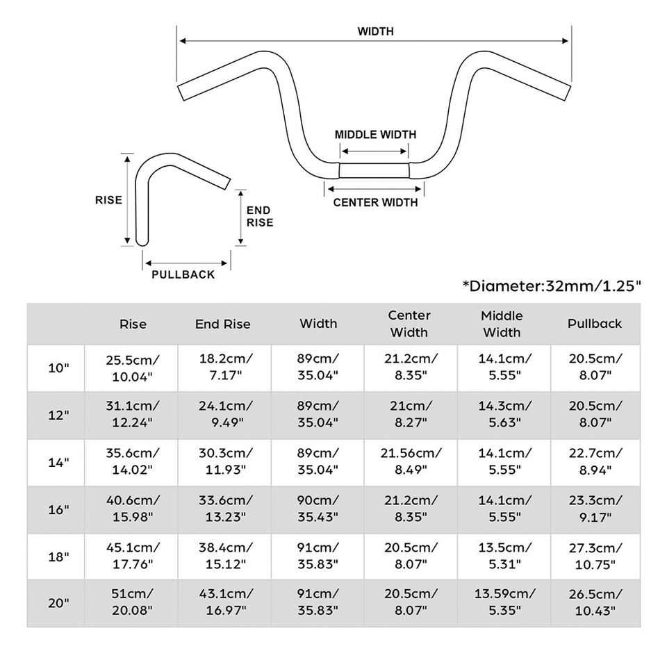 Vente en gros mixte disponible - Guidons modifiés compatibles avec Harley Dyna Custom 8/10/12/14/16/18 pouces pour une installation facile