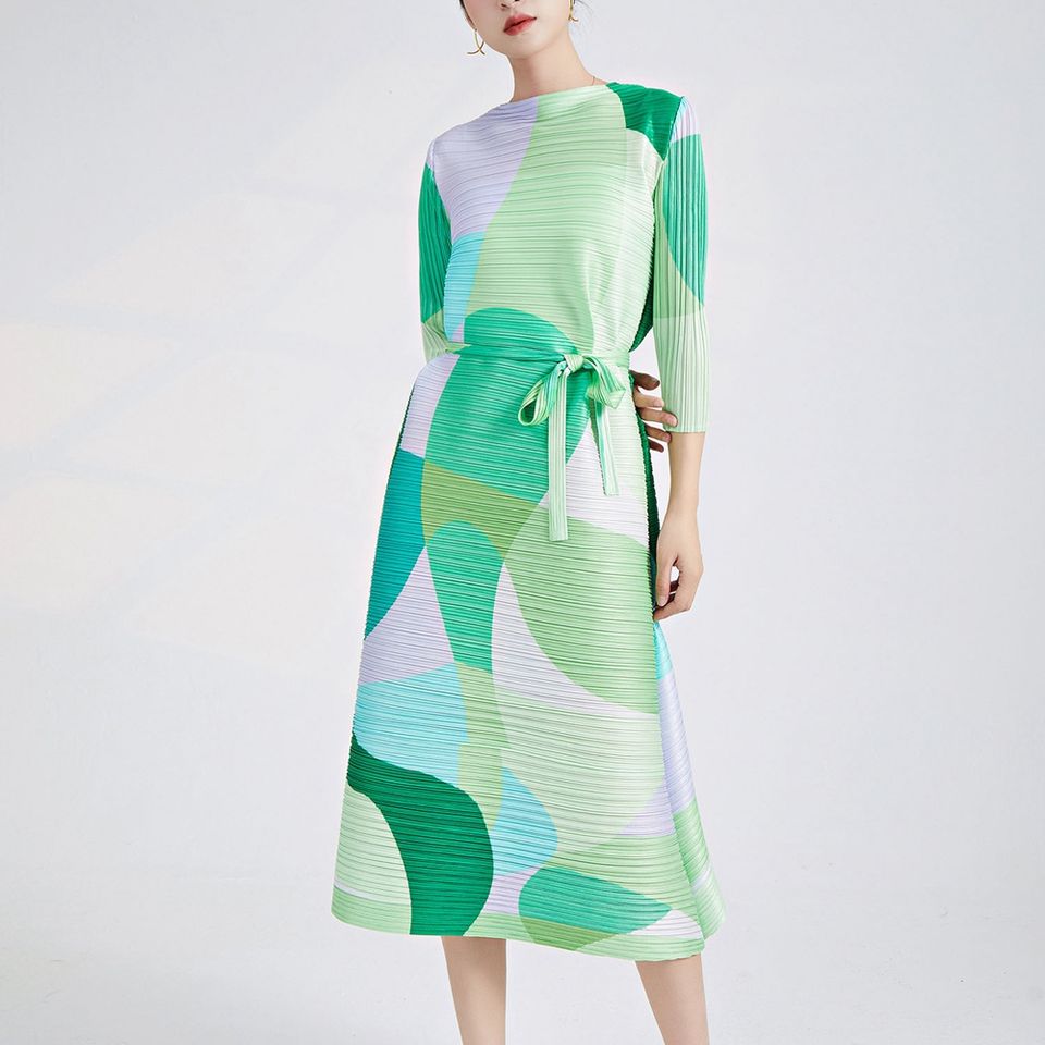 Keywords:Pleated gradient dress