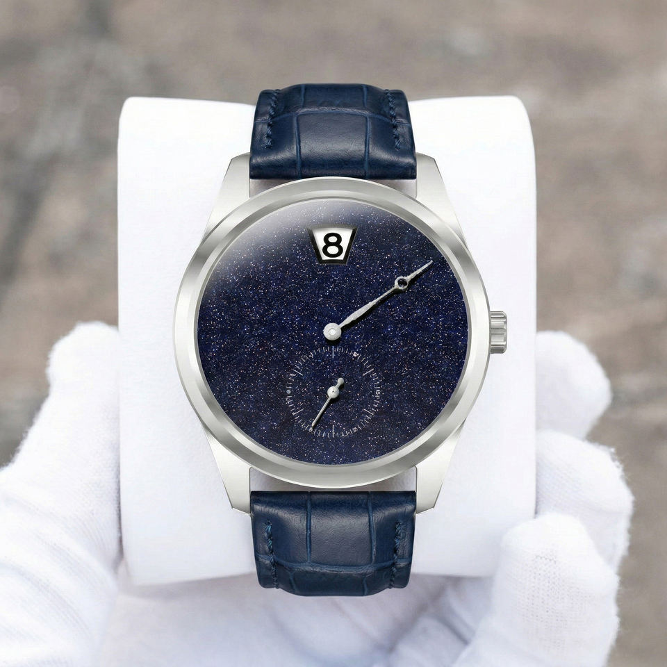 Montre automatique Miyota 9015 avec heures sautantes, cadran en aventurine bleue, bracelet en cuir, montre mécanique de luxe pour homme, logo personnalisé OEM ODM