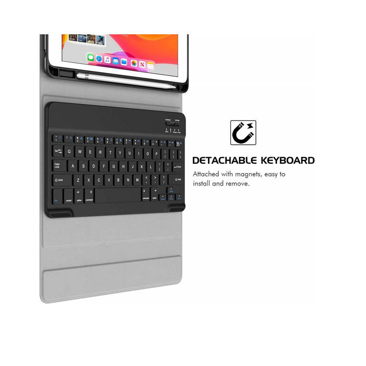 Kpymoko — étui pour clavier mince en cuir PU, 10.2 pouces, avec porte-crayon, sans fil détachable, pour iPad, 2020/2019