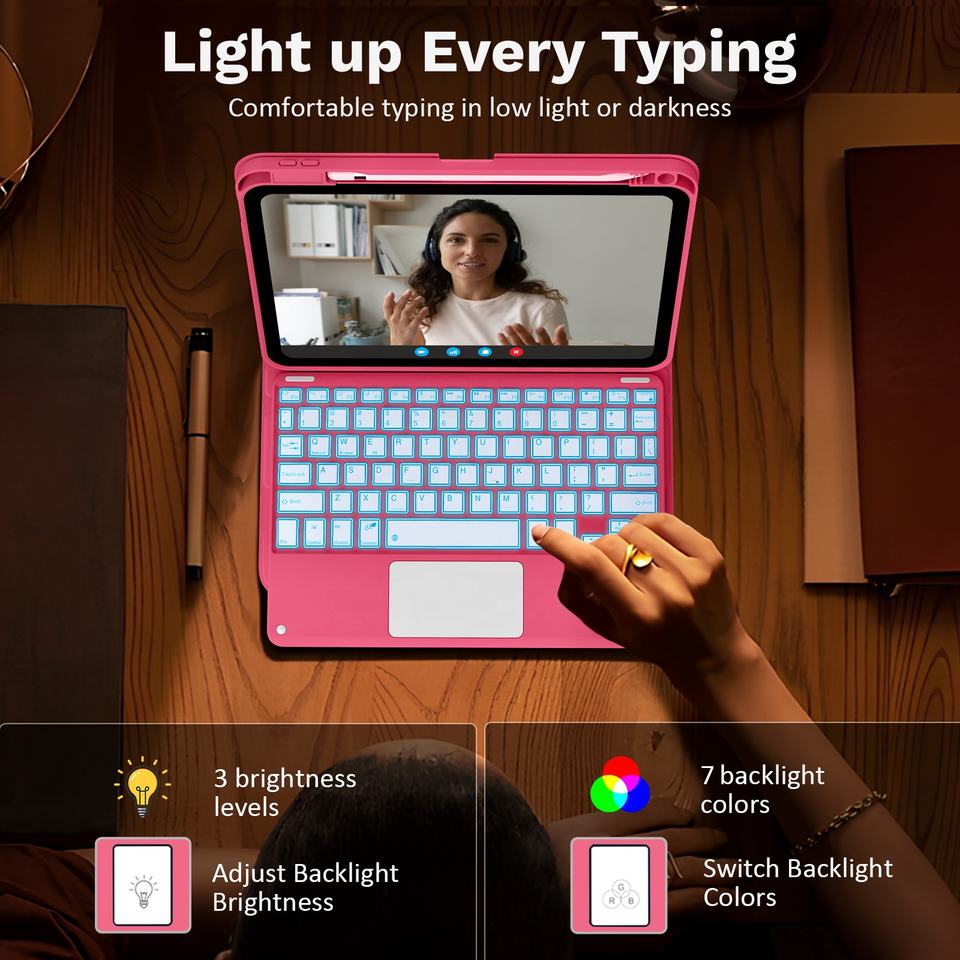 Clavier rétroéclairé sans fil MoKo Premium QWERTY avec pavé tactile étui magnétique en cuir PU pour iPad A16 10th 11th 2025