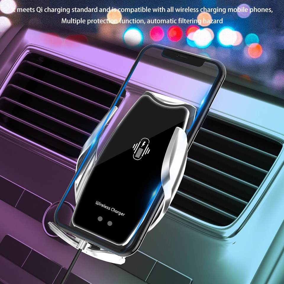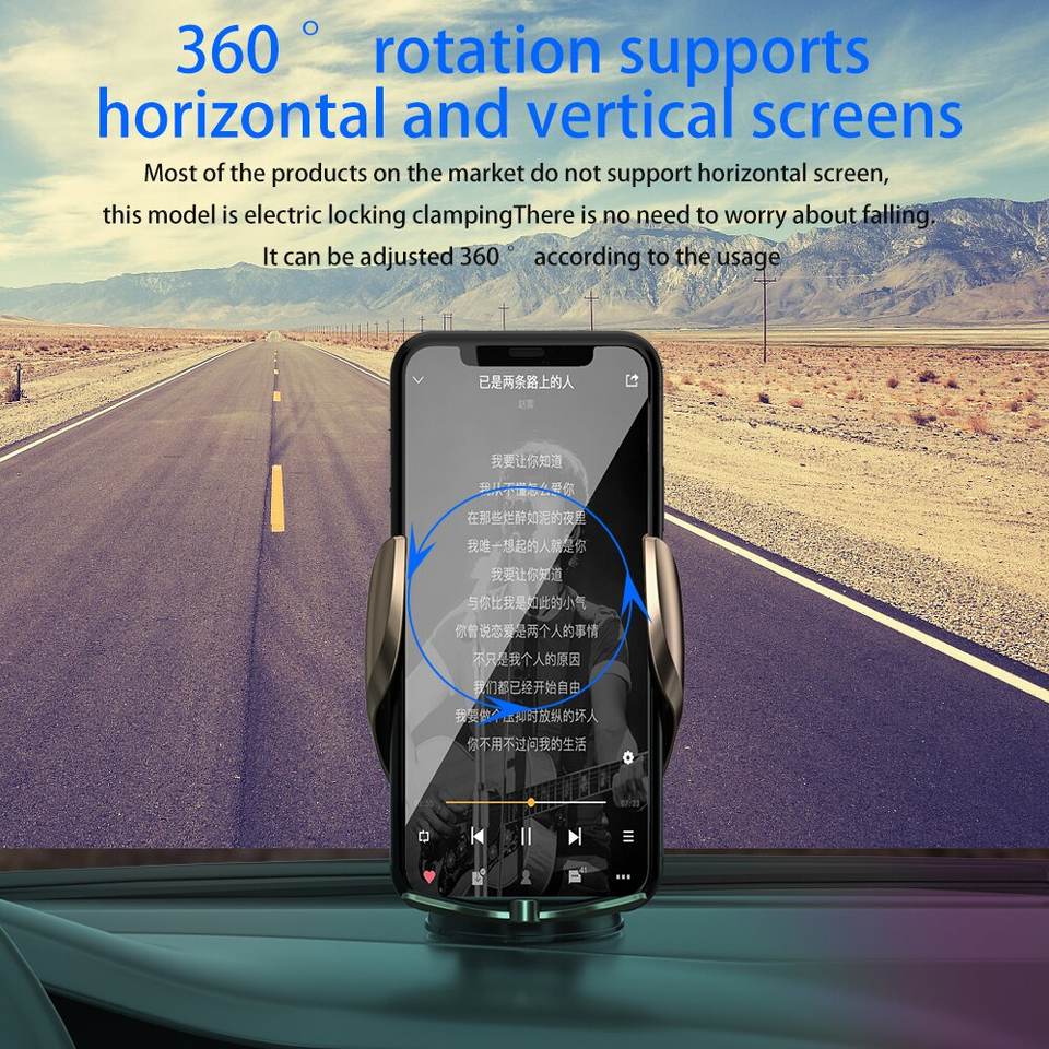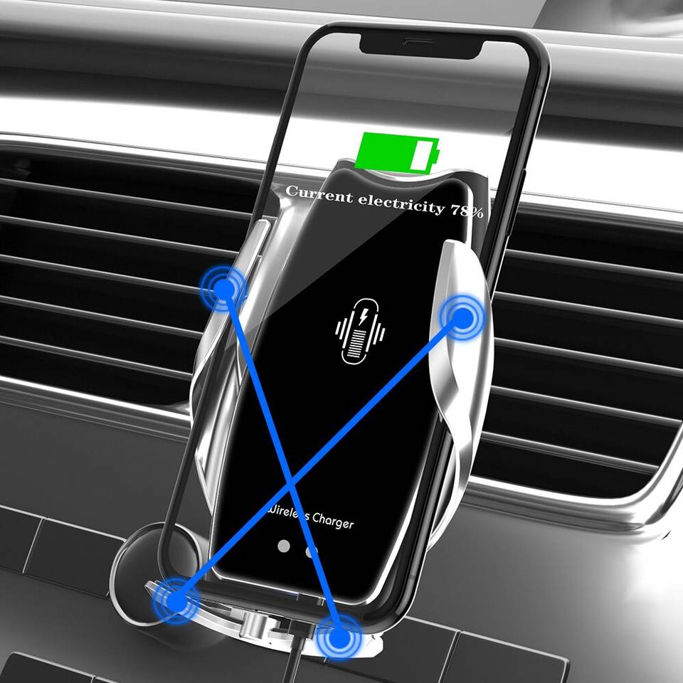 Support de téléphone portable pour voiture avec charge rapide sans fil, fixation sur grille d'aération et ventouse