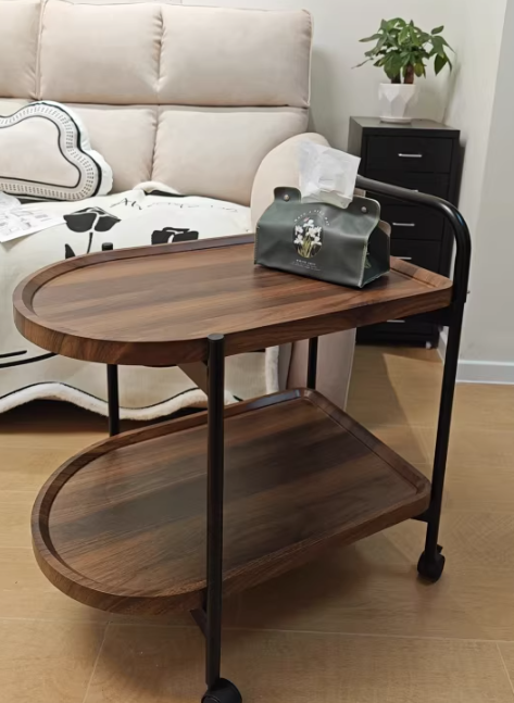 Wheeled Bedside Table with Simple Design for Movable Bedroom Storage