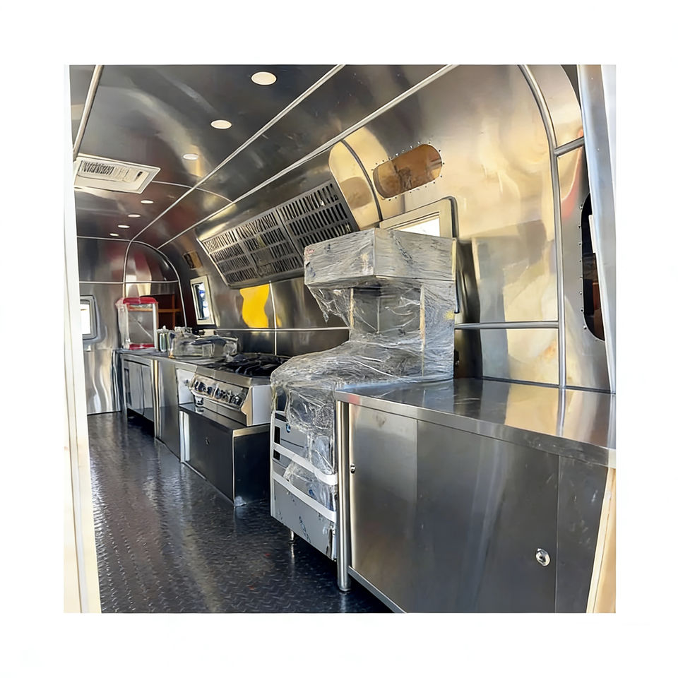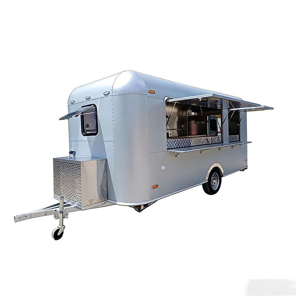 Chariot de restauration mobile haut de gamme en acier inoxydable, remorque remorquée pour la vente de glaces, de restauration rapide, de café, de thé au lait, de gâteaux, de collations