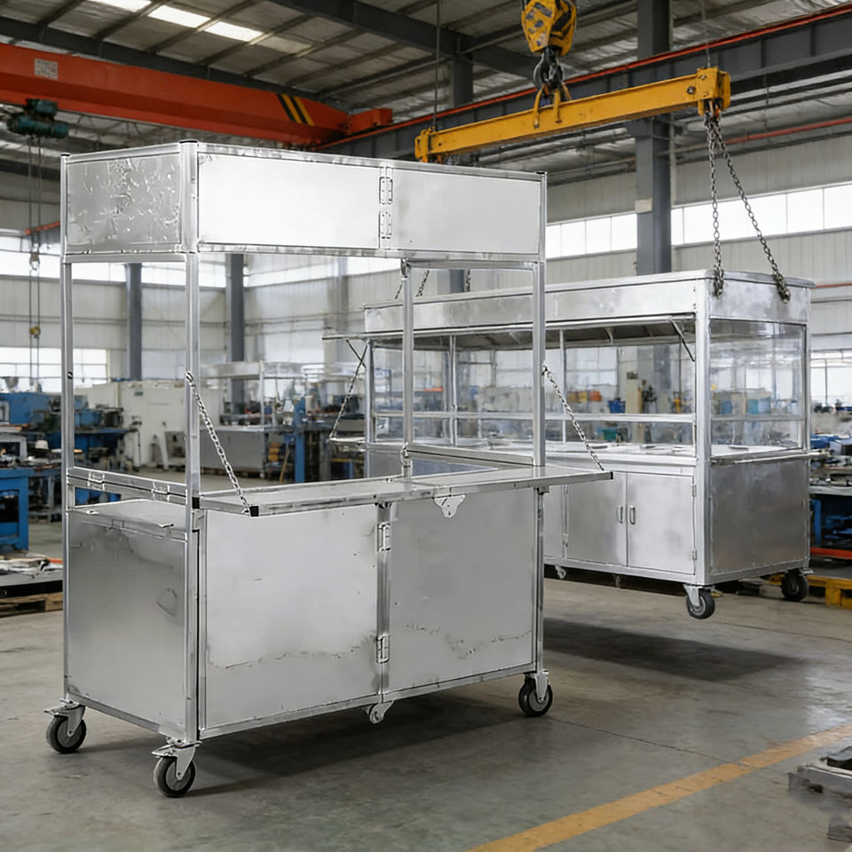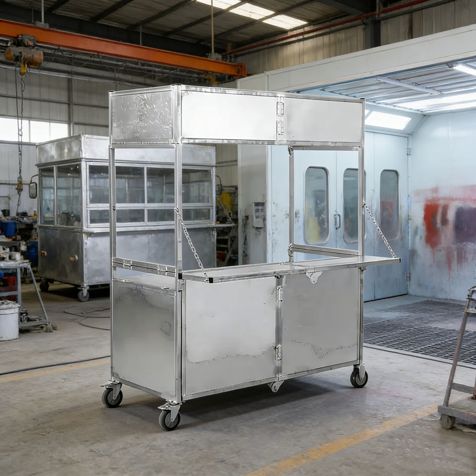 Chariot de nourriture mobile pliable en acier inoxydable à 4 roues, résistant à la rouille, garantie de 2 ans, pour crème glacée, café, hot-dogs, bonbons