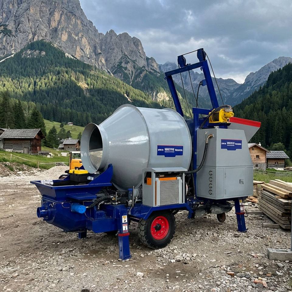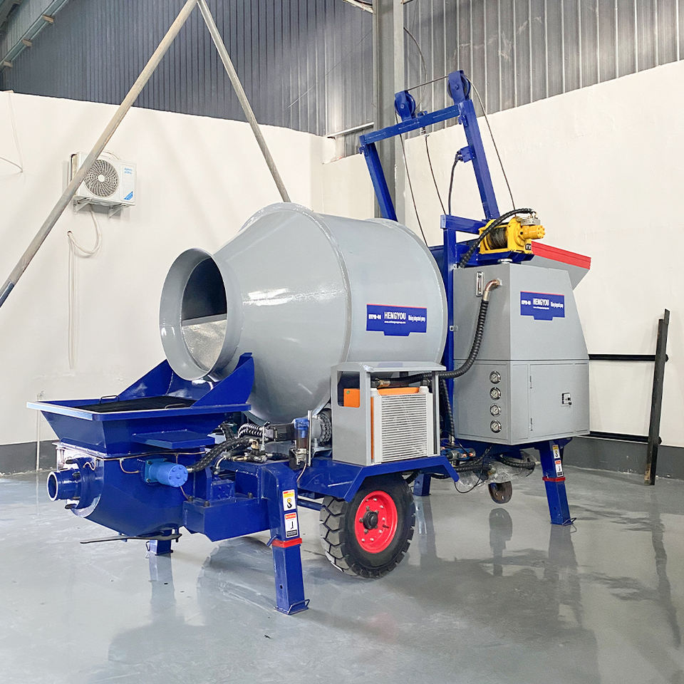 Bétonnière mobile avec pompe à vendre, machine à mélanger le ciment avec pompe 15M³/H