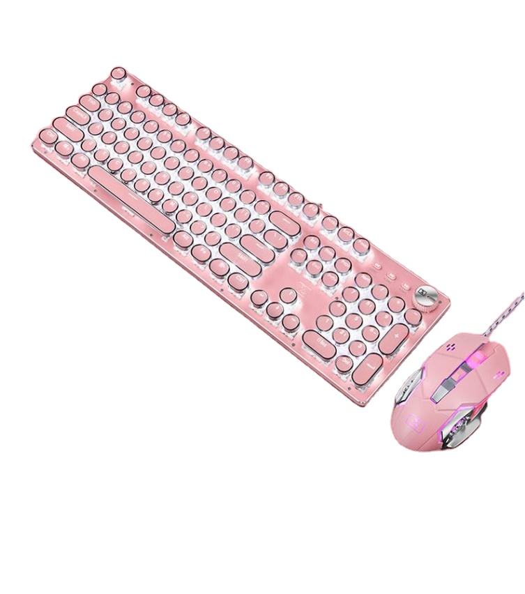 Ensemble de jeu mécanique filaire avec clavier et souris, pouces, rétro, Punk, interrupteurs bleu, USB, pour PC portable, ordinateur de bureau