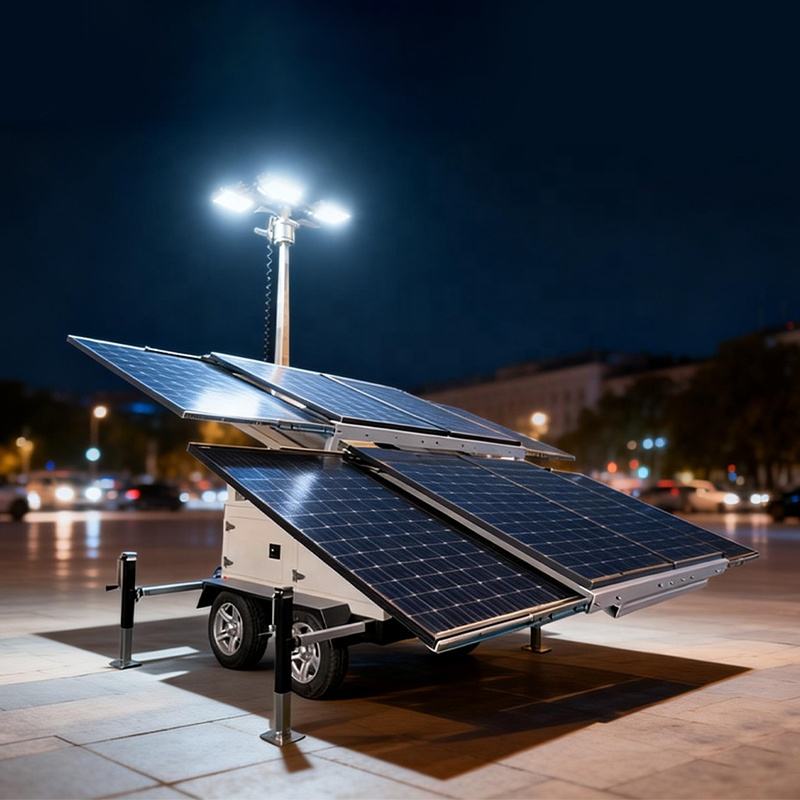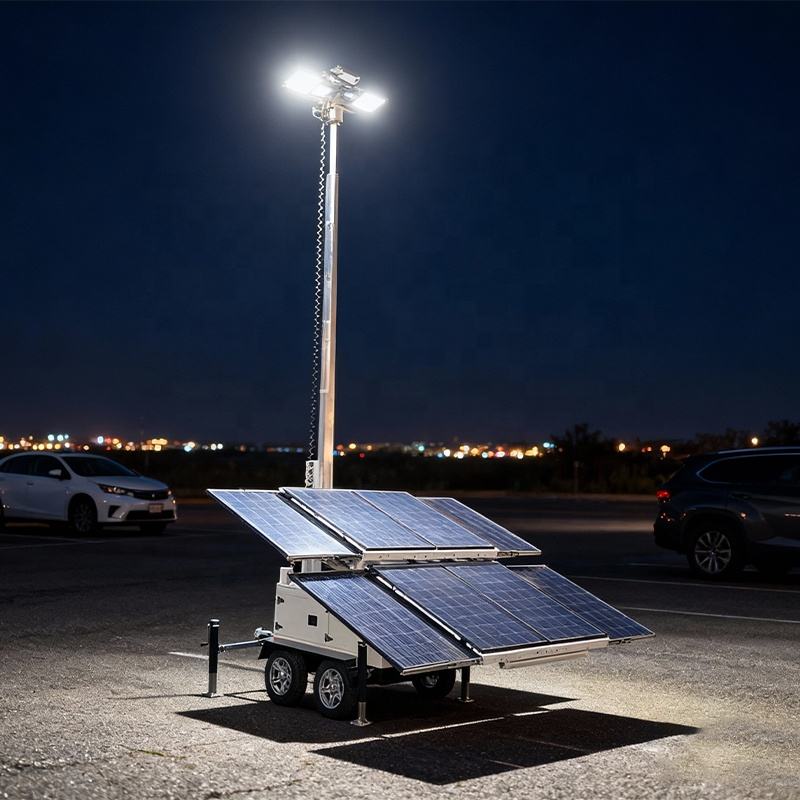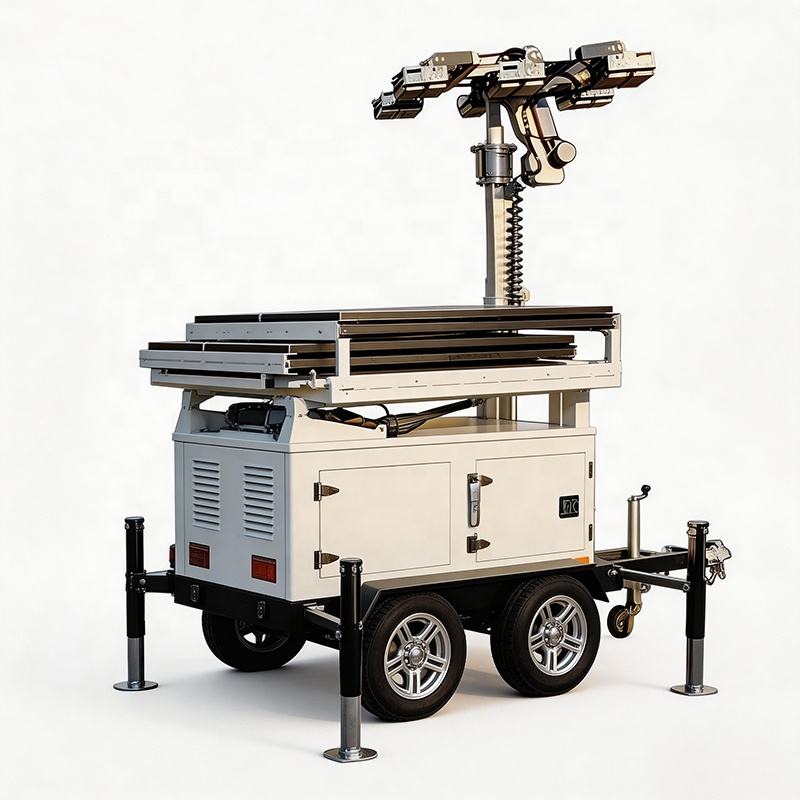 Remorque solaire mobile robuste avec caméras de vidéosurveillance HD, remorque de sécurité solaire avec 8 panneaux solaires de 300W