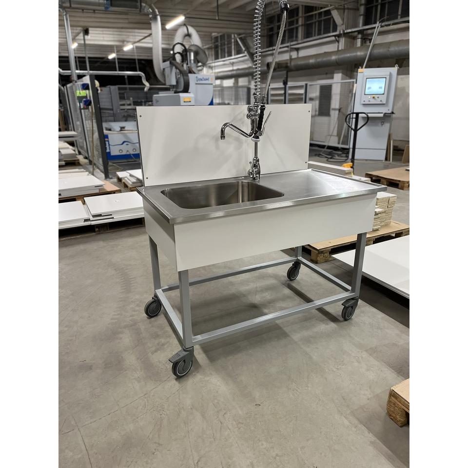 Neuberger table de lavage de laboratoire mobile, portable, en acier inoxydable, plan de travail, douche de nettoyage, revêtement