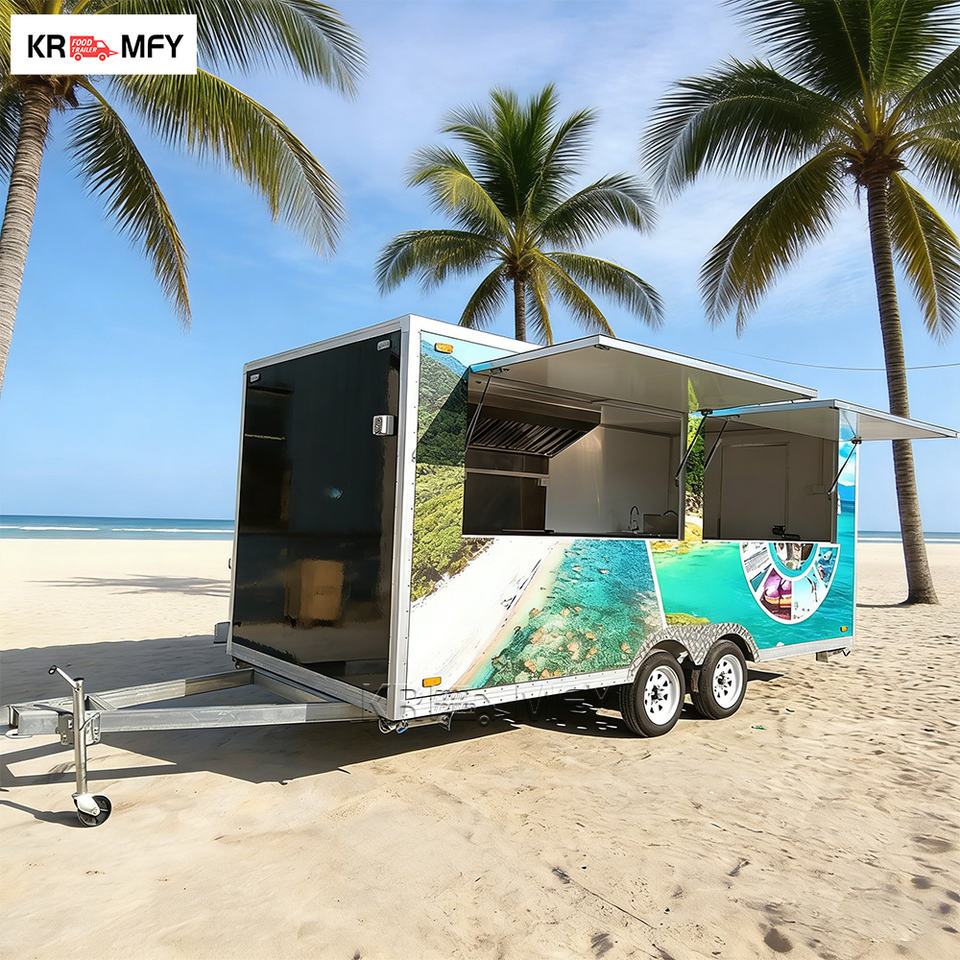 Remorque alimentaire mobile multifonctionnelle en acier inoxydable, fibre de verre et aluminium pour la fabrication de crêpes