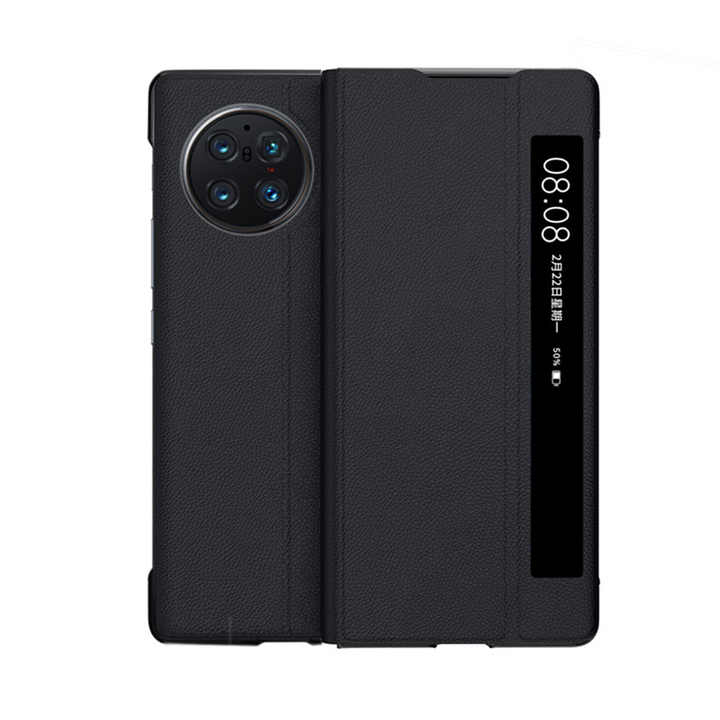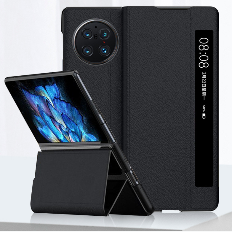 Étui de protection officiel en cuir intelligent avec fenêtre pour téléphone pliable Vivo X Fold