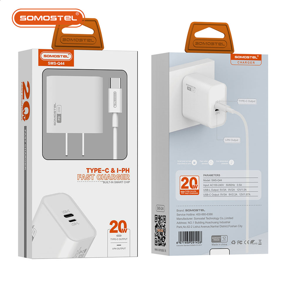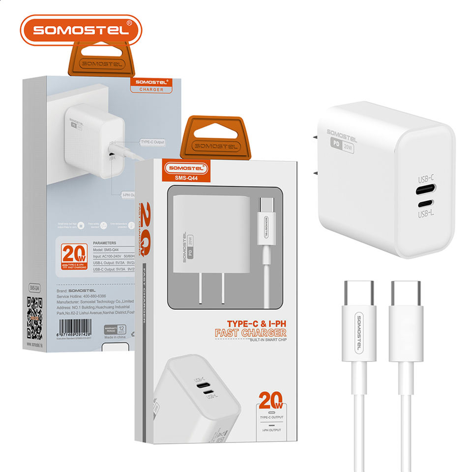 Chargeur de téléphone portable Power 2Type-c 20w Chargeur de voyage rapide + câble PD Charge rapide pour Samsung iPhone Chargeur rapide