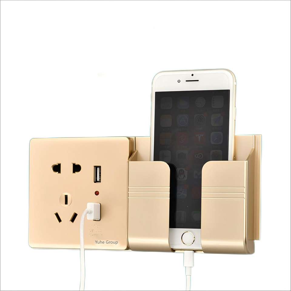Punch Free Wall Mounted Organizer Storag:Mobile phone charging pile bracket plug