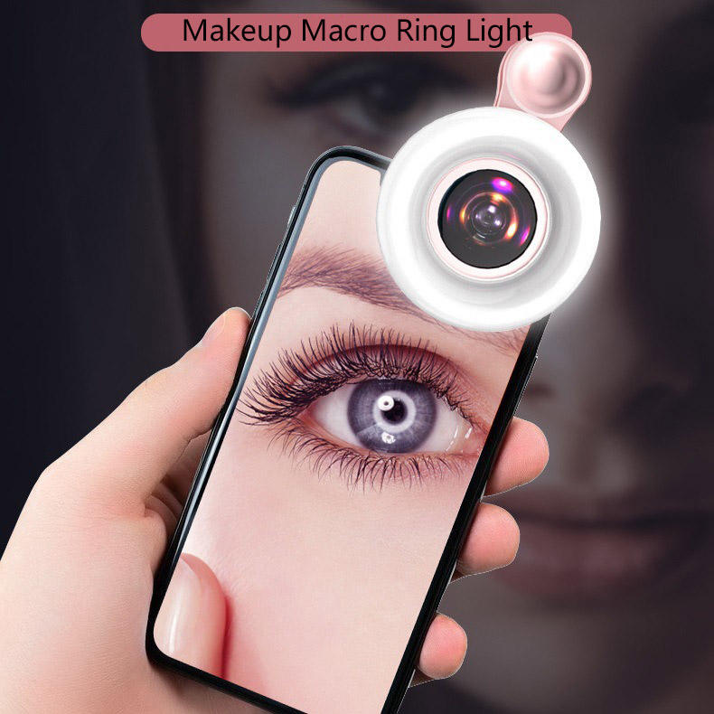 Lentille de téléphone portable Macro caméra beauté lumière de remplissage Mini Clip LED anneau lumineux pour cils ongles tatouage sourcil tir