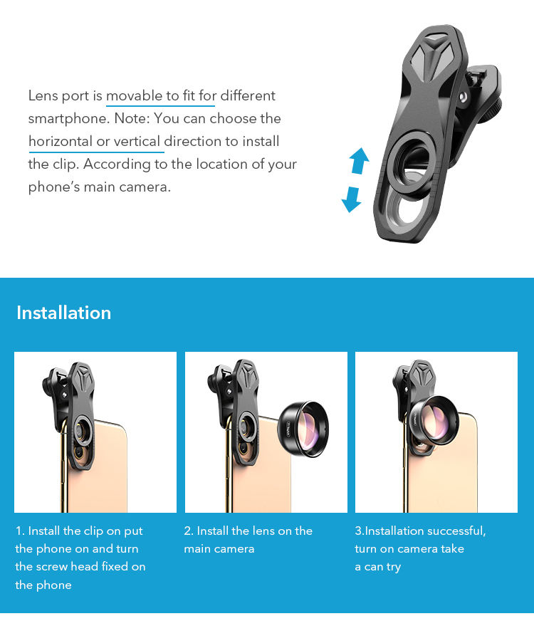 Lentilles de téléphone portable, télescope optique 2X, Zoom, pour Iphone, samsung, Xiaomi, Smartphone