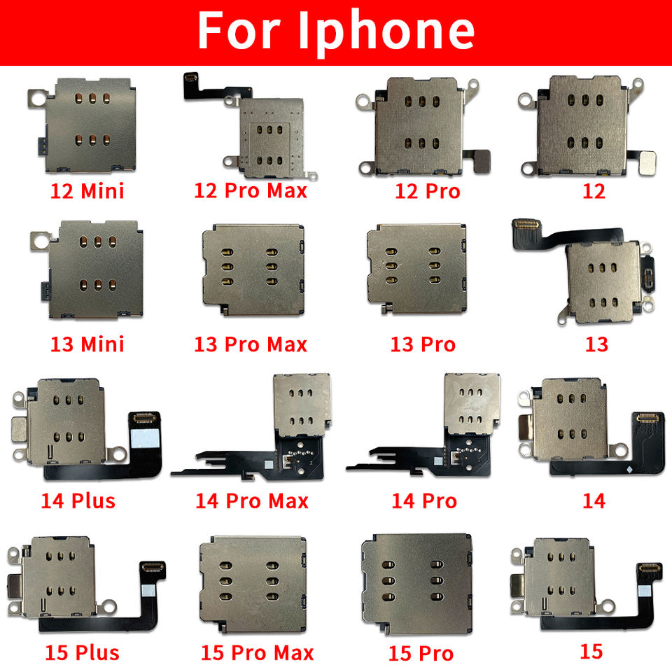 Pièces de réparation pour téléphones mobiles : Lecteur de carte SIM, support de carte mémoire Micro SD, câble flexible pour iPhone 15 14 13 12 Pro Max Mini