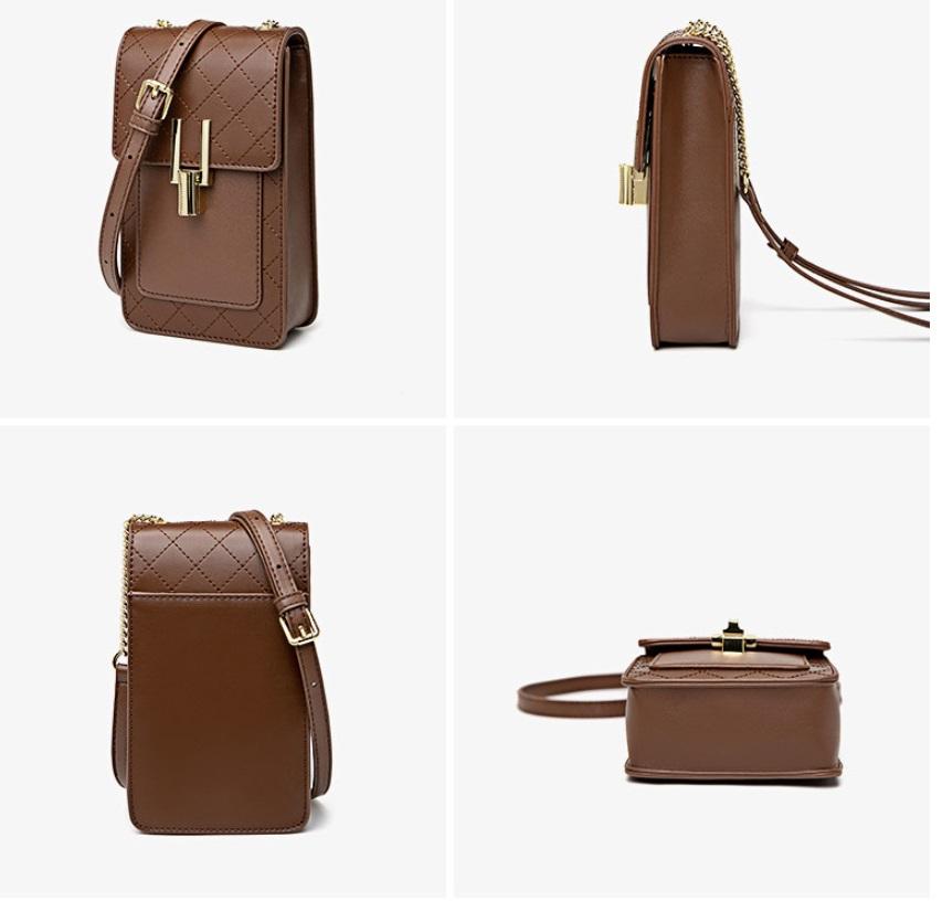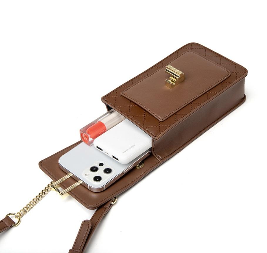 Téléphone portable Sac À Bandoulière Téléphone Portable Pochette Sac À Bandoulière Mode Quilting En Cuir Véritable pour Femmes 11X18.5X5CM TWS-BC10121 TWINSIS