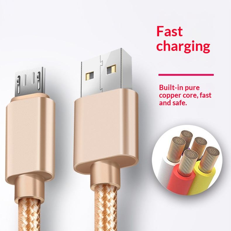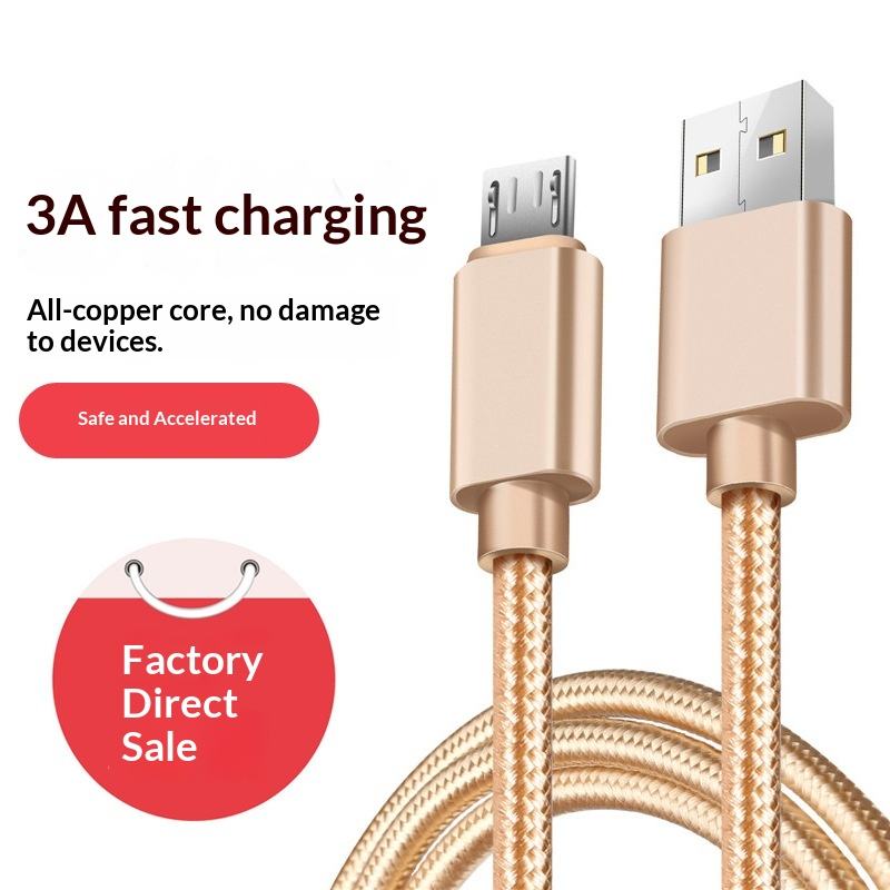 Câble de données 3M pour téléphones mobiles, câble micro USB tressé en nylon, charge rapide