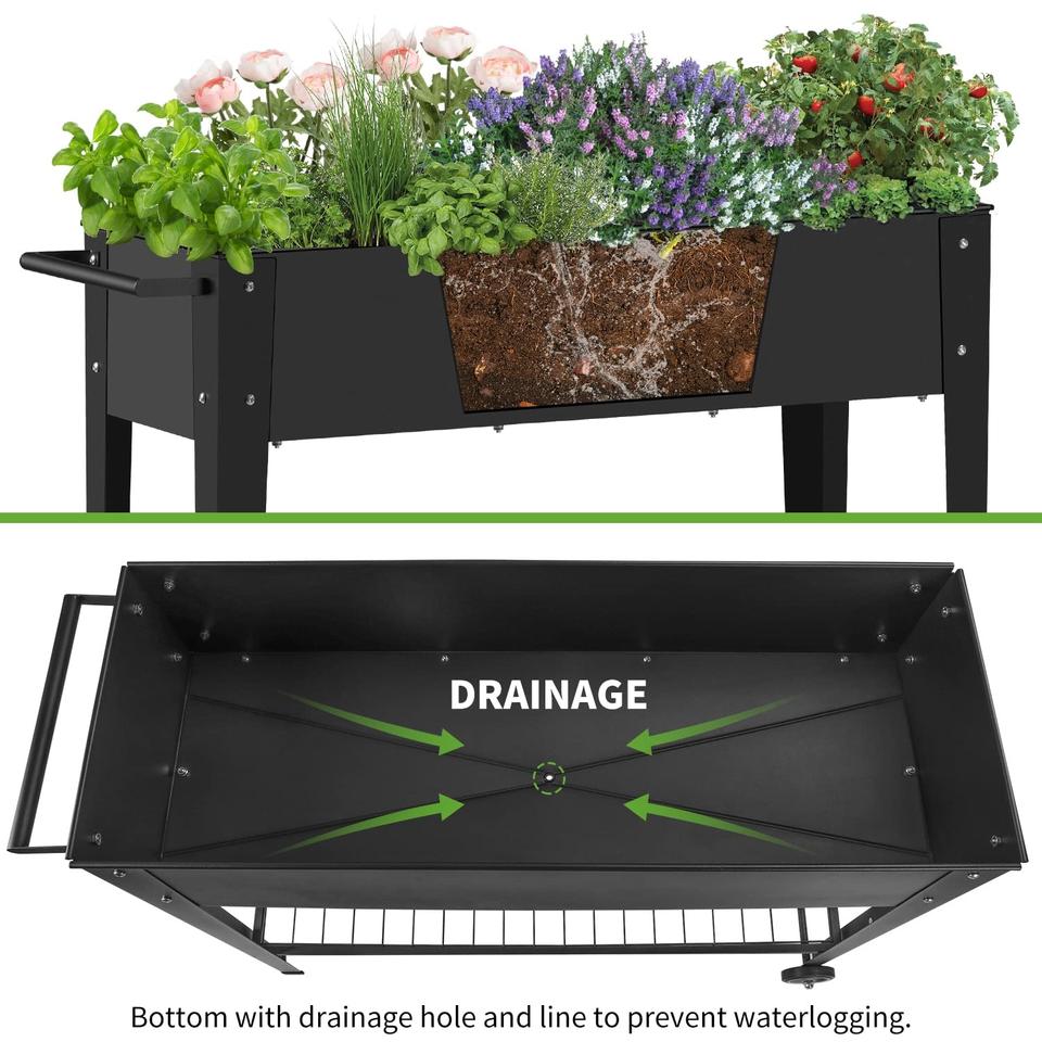 Jardinière mobile surélevée sur roues Chariot de jardinière portable Lit de jardin surélevé intérieur extérieur avec pieds