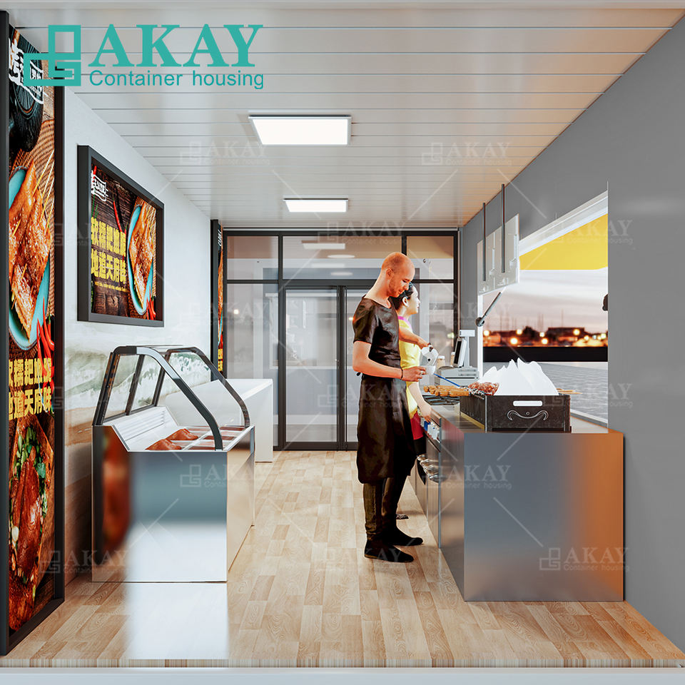 Des maisons préfabriquées mobiles de structure en acier appropriées aux restaurants de cafés de rues commerciales peuvent être employées comme maisons de conteneur