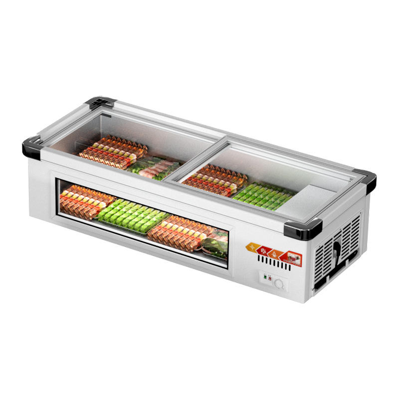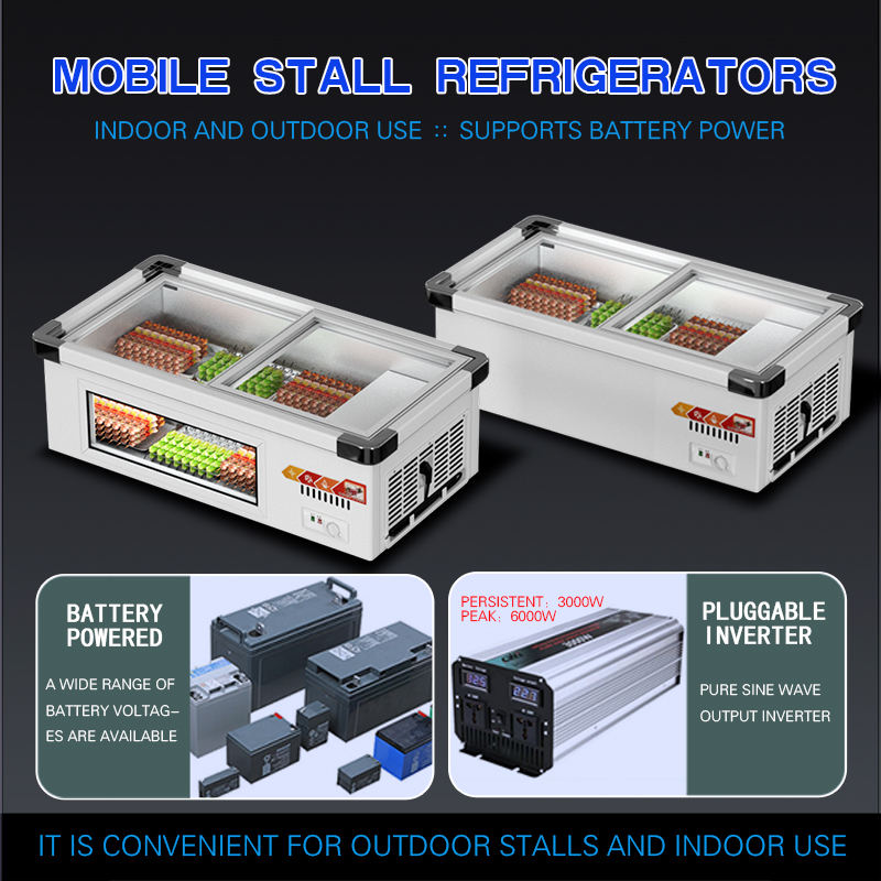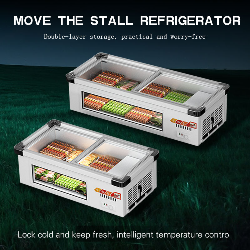 Vitrine de congélateur réfrigérée mobile avec couvercle en verre Vitrine de congélation mobile à usage commercial