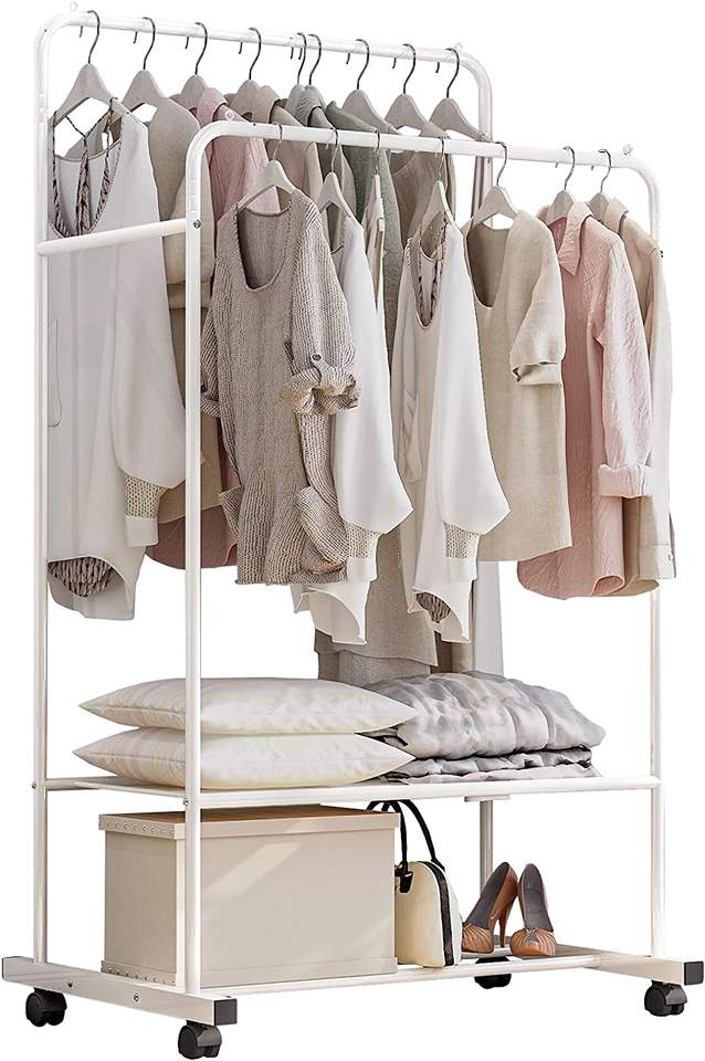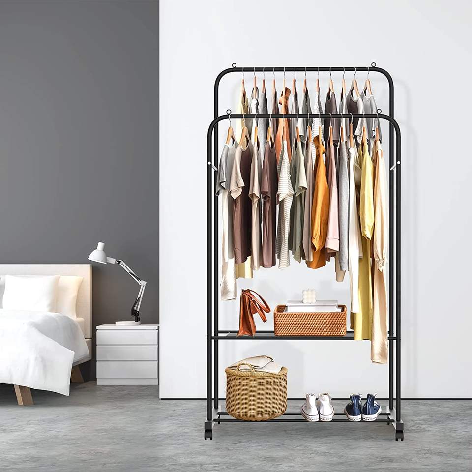 Nom du produit:Mobile Double Tige Vêtement Suspendus Rack Vêtements Magasin Présentoir