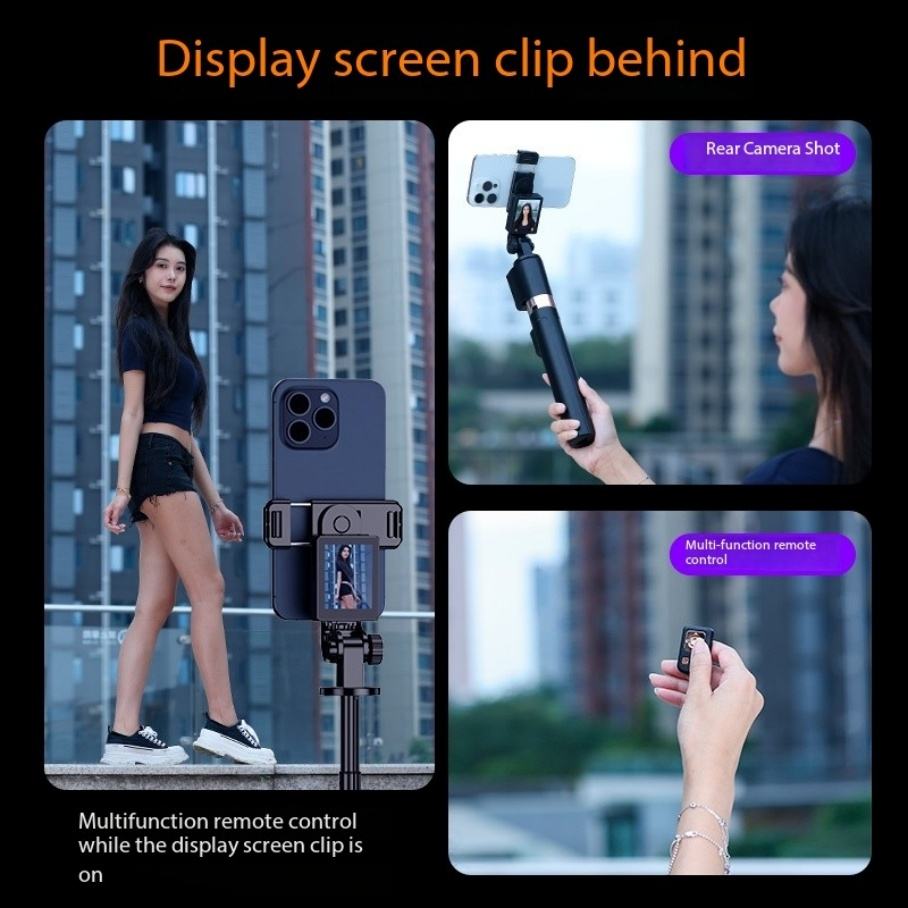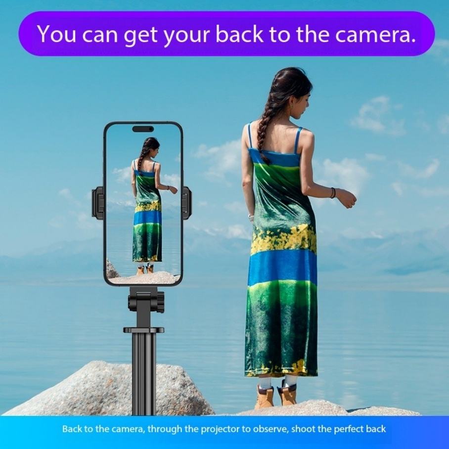 Perche à selfie avec projection d'écran mobile, trépied rétractable, hauteur réglable de 1,7 mètre et affichage de projection d'écran