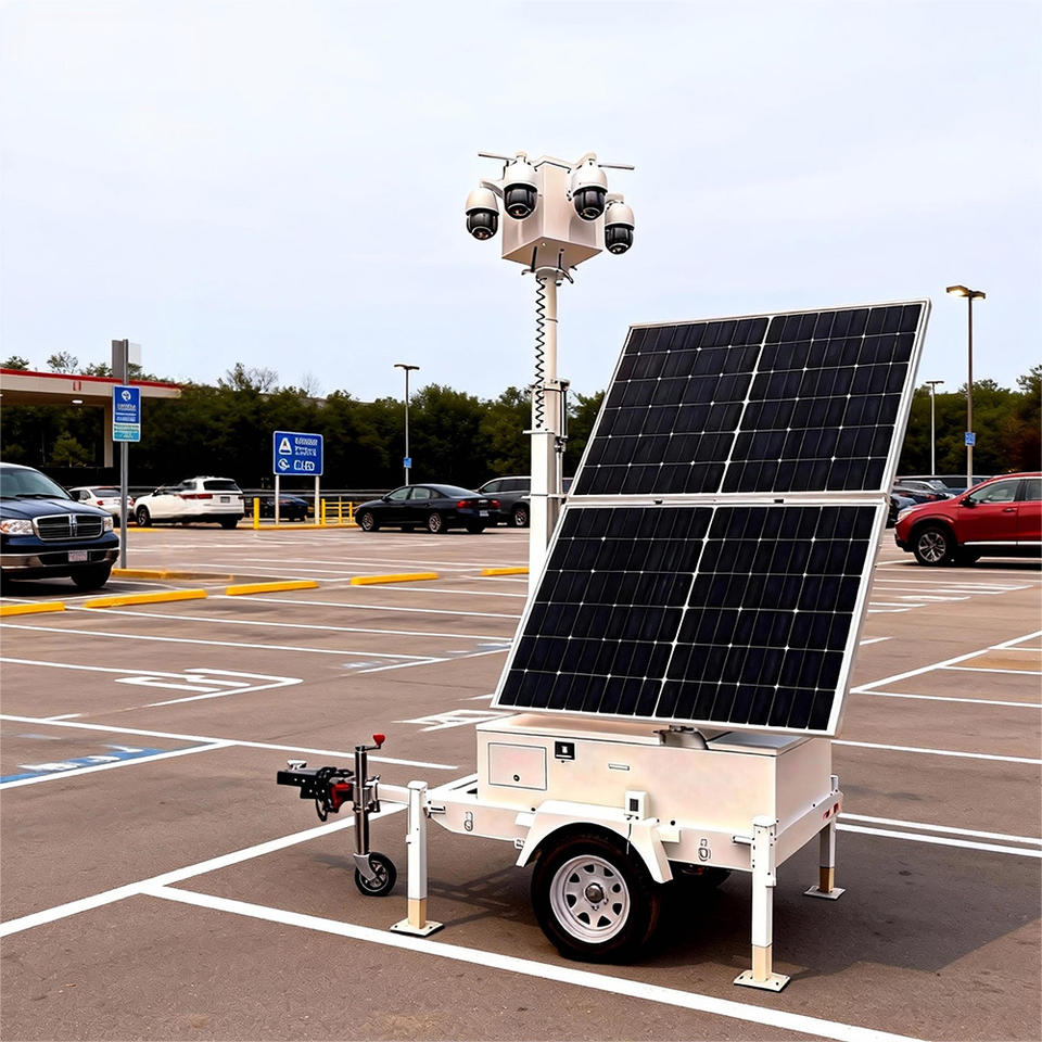 Système de sécurité portable sur remorque solaire mobile pour les zones éloignées, solution de surveillance hors réseau avec déploiement facile