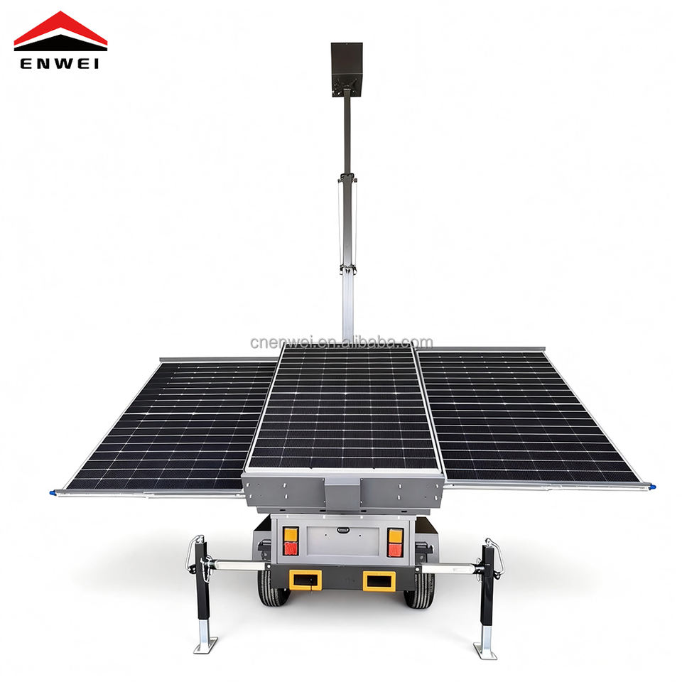 Remorque de sécurité solaire mobile avec 3 panneaux solaires pour sites isolés et surveillance hors réseau