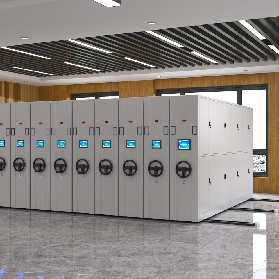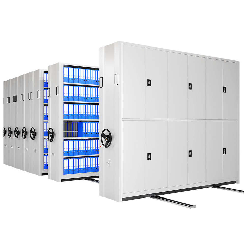 Étagères mobiles en acier anti-poussière pour collections spéciales de bibliothèque, rayonnages compacts mobiles en acier pour hôpitaux et laboratoires