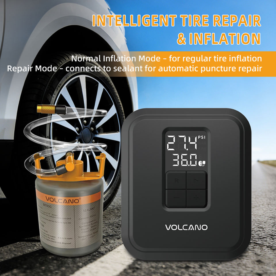 Kit d'outils de réparation de pneus à double mode d'urgence avec gonfleurs de pneus