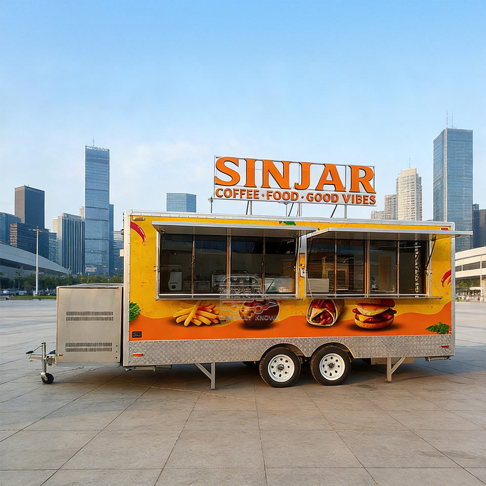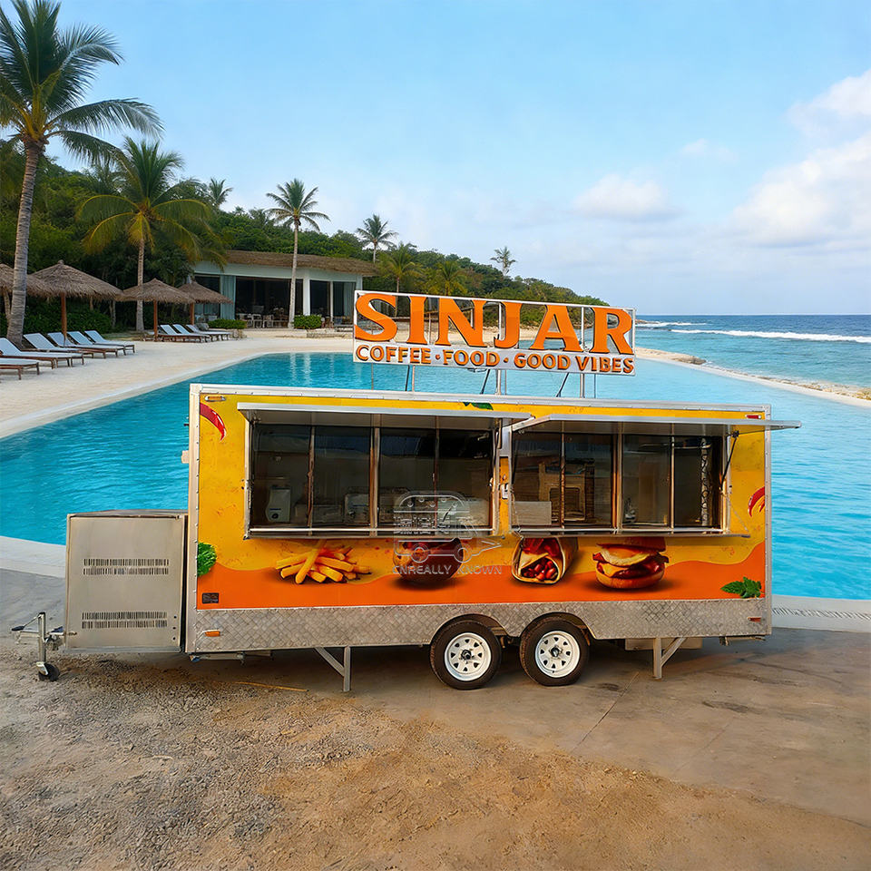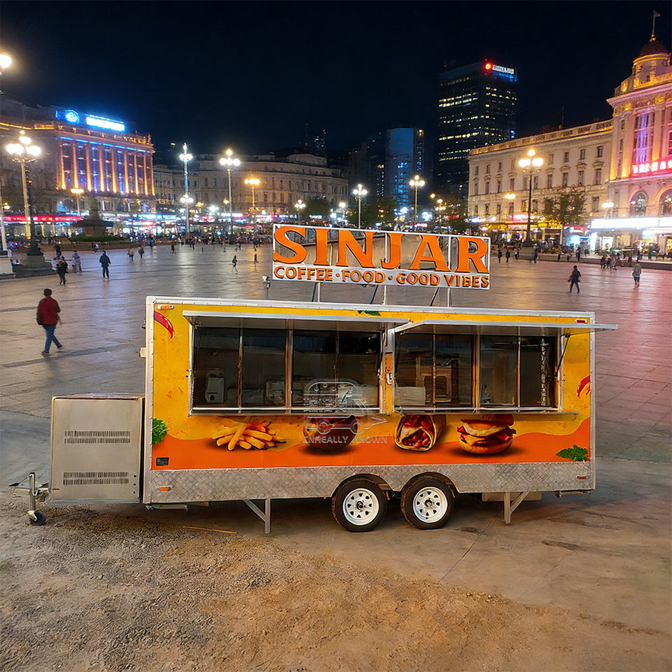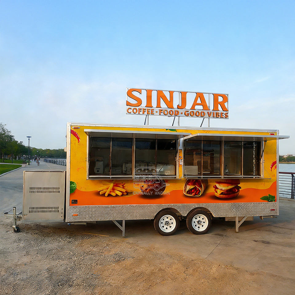 Remorque mobile personnalisée pour barbecue, cuisine complète, poulet frit, restauration rapide, hamburgers, hot-dogs, café