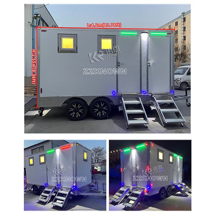 WC mobile et remorque sanitaire moderne, toilettes portables avec douche pour le camping, la construction et les activités de plein air