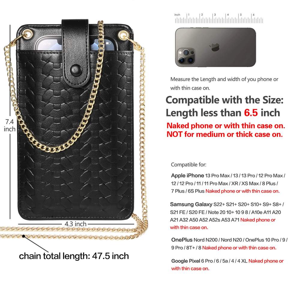 Portefeuille pour téléphone portable, petit sac à bandoulière avec fente pour carte, adapté à l'iphone 13 12 11 Pro Max XR (noir)
