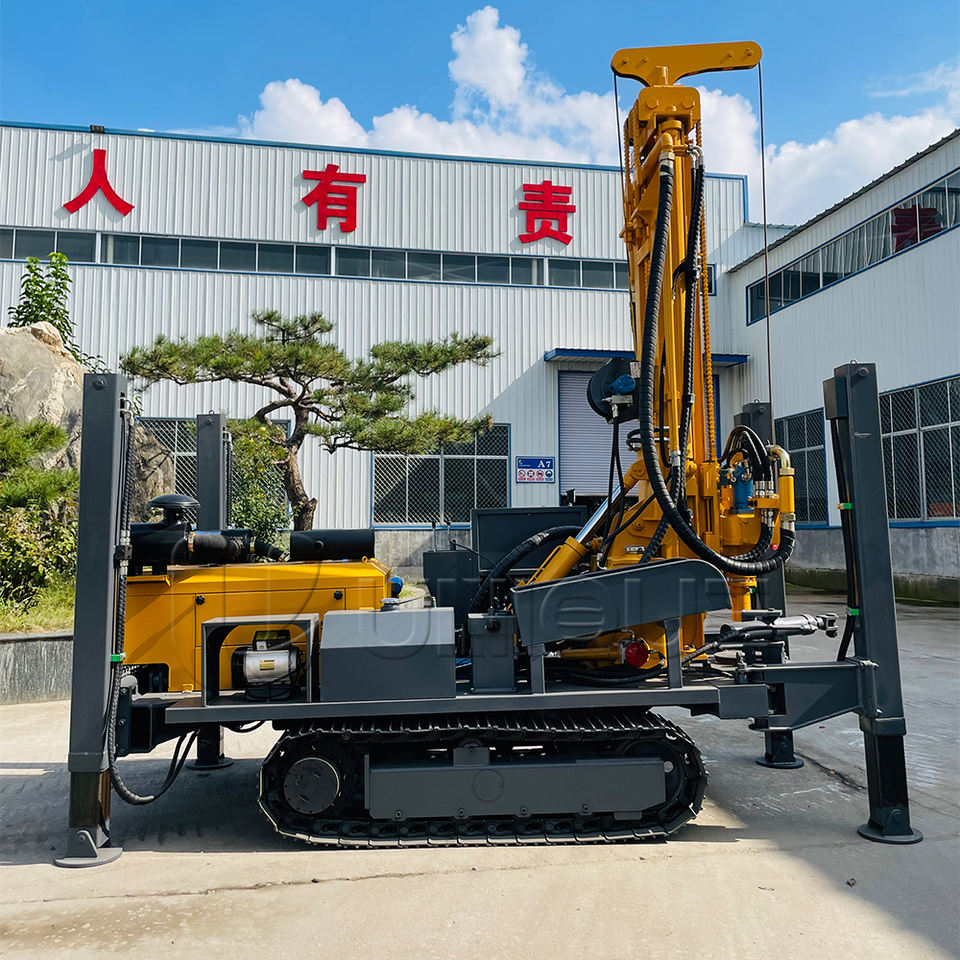 Machine de forage de puits d'eau mobile, machine de forage de puits d'eau hydraulique sur chenilles, équipement de forage de puits d'eau de 260 m, pompe à air diesel