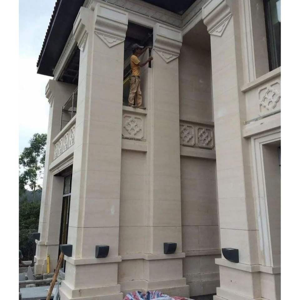 Bloc et carrelage en calcaire crème Moca pour les applications de villa en plein air Design moderne avec finitions polies et flambées