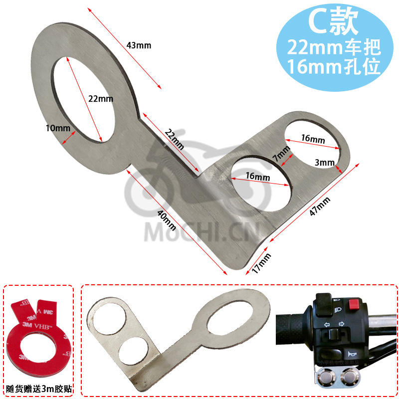 Support de commutateur de guidon de moto Mochi, 22mm-16mm, en acier inoxydable, universel, adapté aux commandes de scooter et de moto