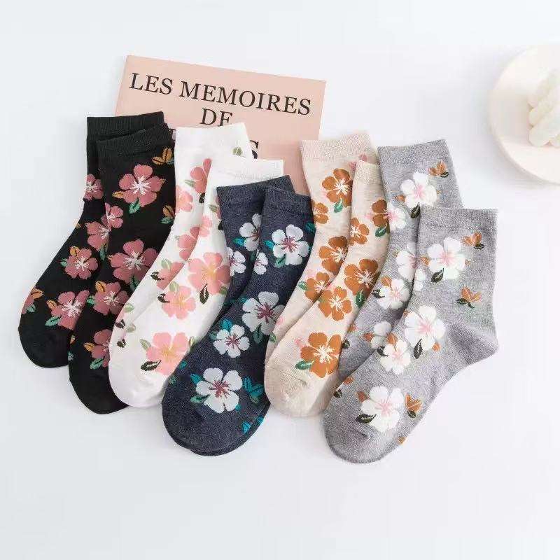 Ningbo Retop Textile Chausssettes invisibles en coton à imprimé floral, coupe basse et large pour femmes