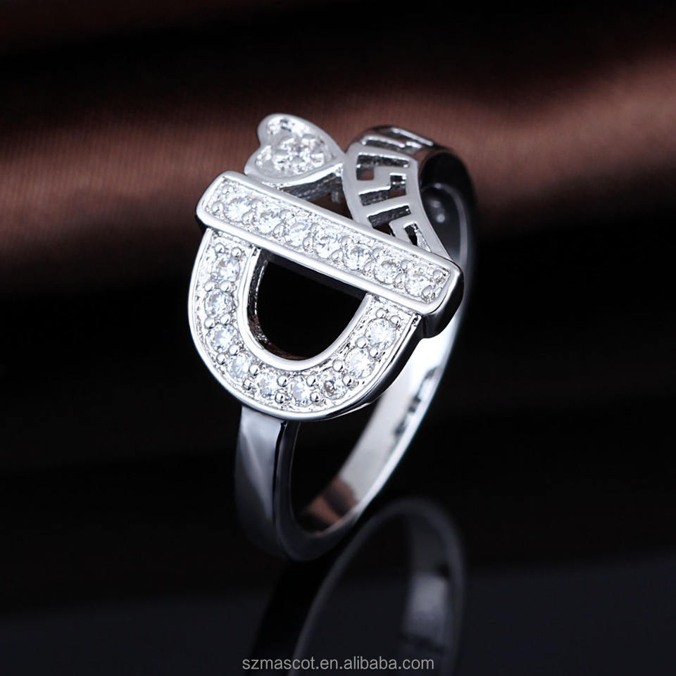 Mode bijoux Unique Design Initia lettre D anneaux avec CZ cristal gros